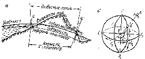 Рис. 1.4. Географическая (геодезическая) система координат: а- уклонение отвесных линий; б- схема определения геодезических координат.