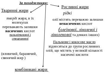 - •Жири є складними ефірами вищих одноосновних карбонових кислот, головним чином пальмітинової, стеаринової (насичені кислоти) і олеїнової (ненасичена кислота) і трьохатомного спирту - гліцерину.