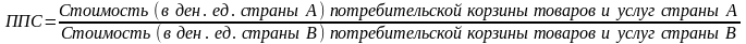 В общем случае паритет (соотношение) между денежными единицами различных стран по их покупательной способности (ППС) может быть рассчитан по формуле: