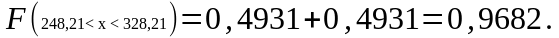 Визначимо для прикладу ймовірність попадання випадкової величини, що розглядається у прикладі, в інтервал 248,21< x < 328,21.