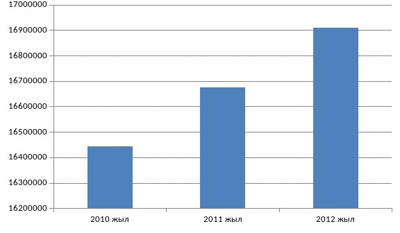 Бұл мәліметте Қазақстан Республикасында 2010 жылдан 2012 жылға дейін жалпы халық саны өсіп келеді.
