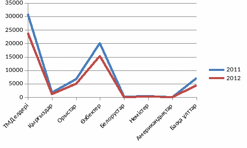 ТМД елдері Қырғыздар Орыстар Өзбектер Белорустар Немістер Американдықтар Басқа ұлттар |