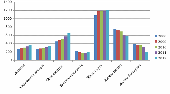Экономикалық тұрғыдан енжар халықтың жоғары білім деңгейі 2012 жылды 2011 жылмен салыстырғанда 12,4%-ға жоғарылады.