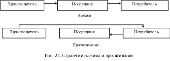 Известный, успешный производитель обычно в состоянии обеспечить поддержку и энтузиазм посредников при выводе новых товаров на рынок и продолжении сбыта прежних. Посредники знают его репутацию, виды поддержки, которые он оказывает в продвижении продукции, его надежность в будущих поставках, характер и уровень спроса на выпускаемую им продукцию. Основной акцент в распределении продукции на работу с посредниками определяется как стратегия нажима.