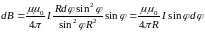 от центра витка поле с индукцией dB.