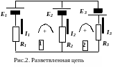 Назовем узлом точку, в которой сходится не менее трех токов (рис.1).
