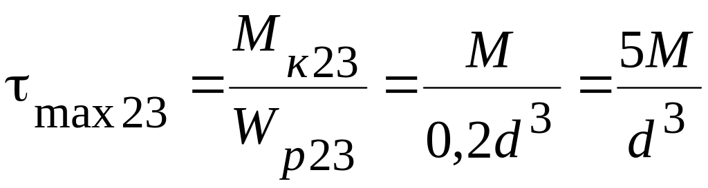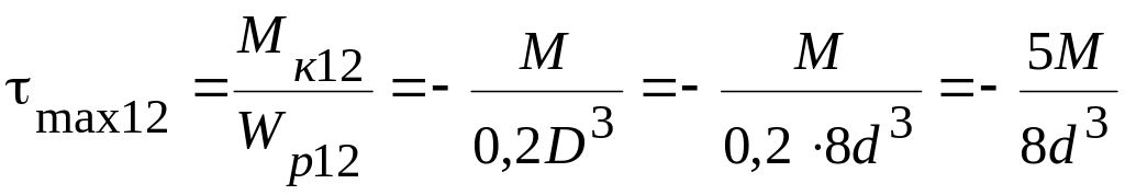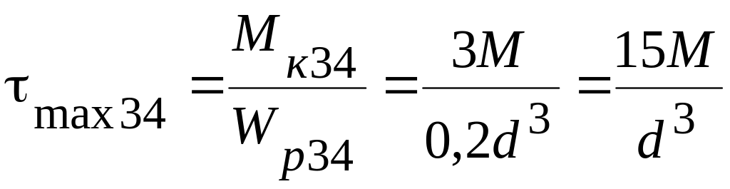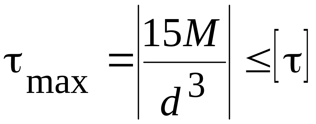 5. Определяем по эпюре касательных напряжений самое большое значение действующего на вал максимального касательного напряжения и составляем условие прочности: