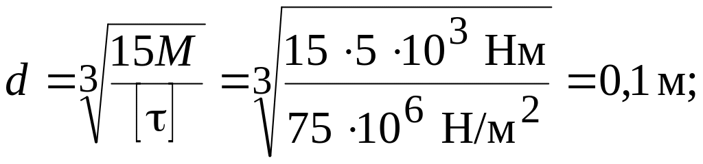 6. Разрешаем условие прочности по знаку равенства и определяем величины диаметров каждого участка вала: