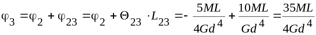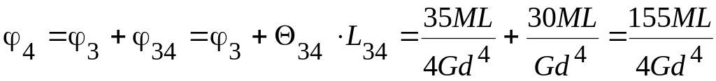 3. Определяем абсолютные углы закручивания характерных сечений вала.