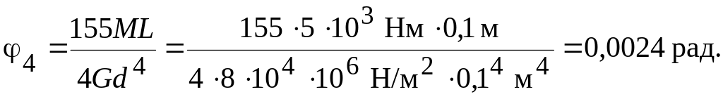 7. Определяем угол закручивания свободного концевого сечения вала: