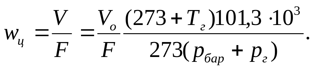 Скорость газа в циклоне равна расходу газа при рабочих условиях F, м/с:
