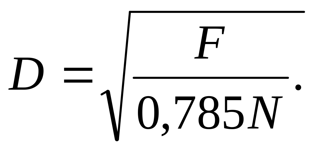 Определяют диаметр циклона, задаваясь числом циклонов N (в м):