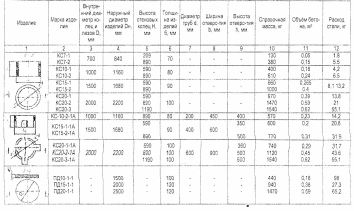 Таблица 1 – Технические данные сборных железобетонных изделий, применяемых сооружений круглых камер и колодцев