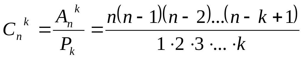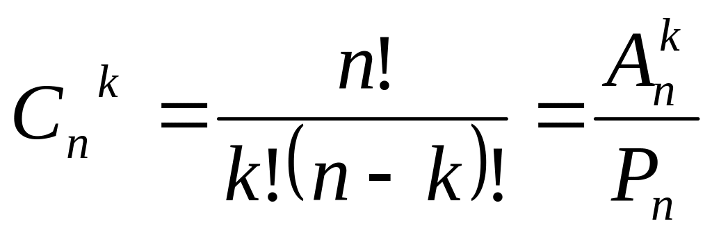 Сочетаниями из n элементов по k называются соединения, которые можно образовать из n элементов, собирая в каждое соединение k элементов; при этом соединения отличаются друг от друга только самими элементами (различие порядка их расположения во внимание не принимается).