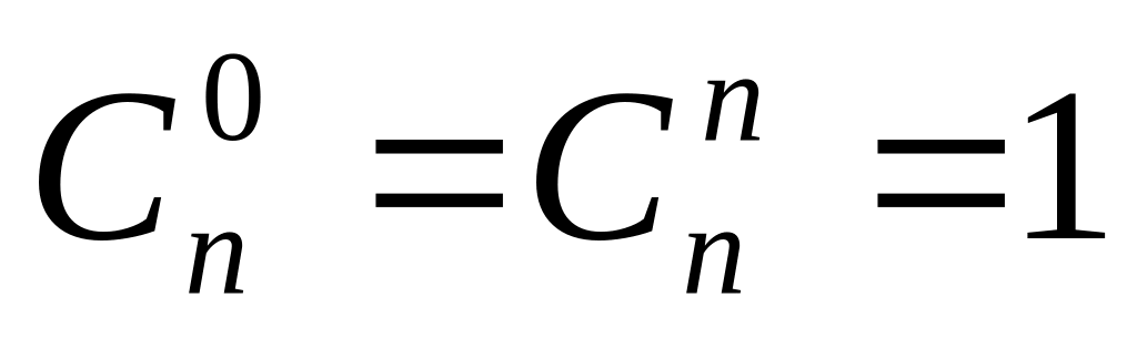 Биномиальные коэффициенты членов разложения, равноотстоящих от концов разложения, равны между собой:
