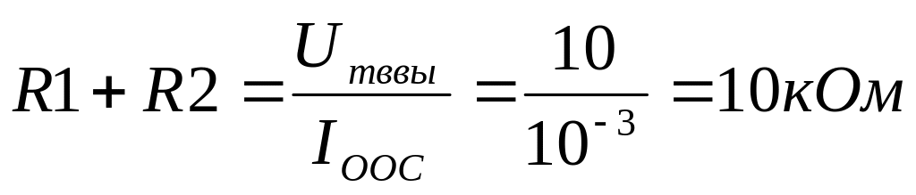Зададим ток в цепи отрицательной обратной связи IOOC равным 1мА. Коэффициент усиления определяется по формуле: