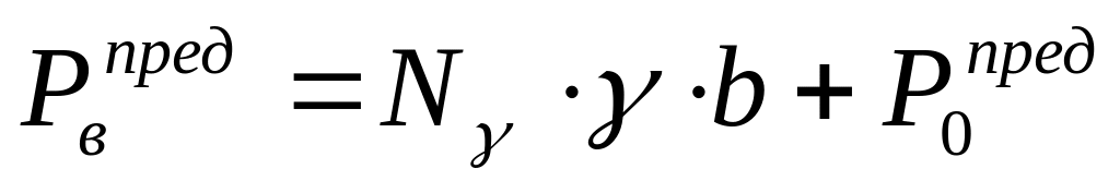 Для определения предельных нагрузок ( исчерпывание несущей способности грунта, переход в неустойчивое состояние) для сыпучих и связных грунтов с учетом бокового пригруза от собственного веса грунта можно воспользоваться формулой В.В.Соколовского