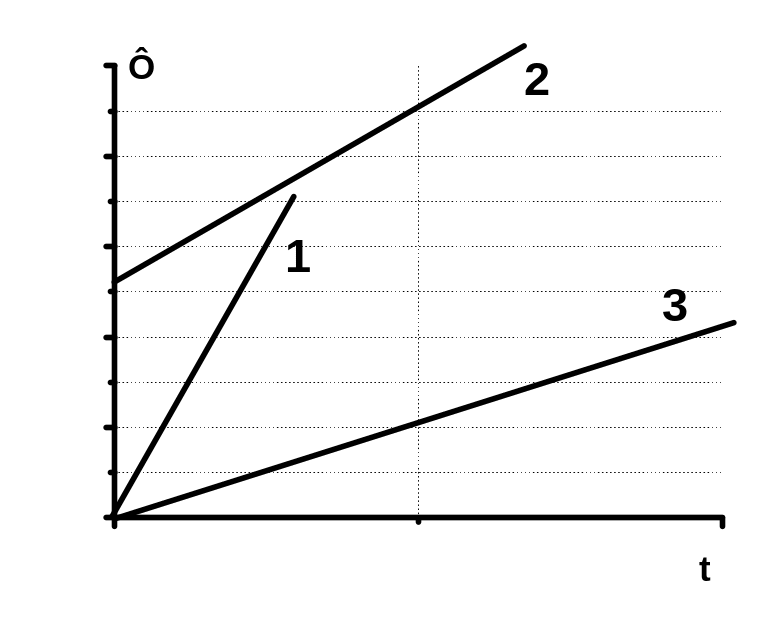 агнитный поток Ф, пронизываюший проводящий контур проволочной рамки, изменяется с течением времени t так, как показано на графике (линии 1 — 3). В каком случае индукционный ток в рамке максимален?