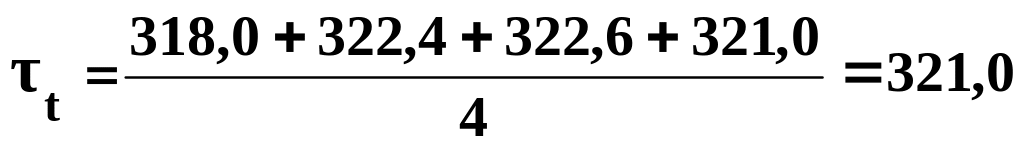Отже, відлік часу 318,0 сек. потрібно відкинути, тому що він відхиляється від середнього арифметичного більше, ніж 1,6 сек, а для розрахунку прийняти відліки 322,4, 322,6, 321,0 сек., тому що вони відхиляються від середнього арифметичного не більше