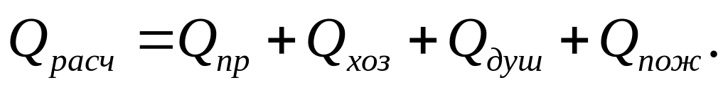 Общий расчетный секундный расход воды на строительство при условии совпадения расходов на различные нужды в литрах, определяется как суммарный расход воды по всем потребителям: