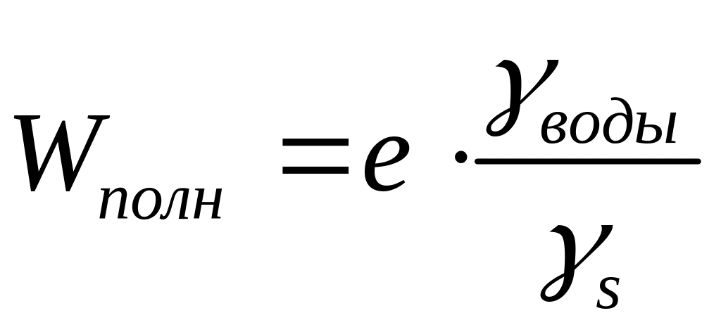 т.е. коэффициент пористости торфа, все поры которого заполнены водой, численно равен произведению полной влагоемкости торфа и плотности его твёрдой фазы, при γ w = 1г/ см3.