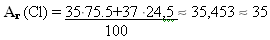 Элемент водород имеет три изотопа, каждый из которых имеет свое название: 1 1H 2 1H (D) 3 1Н (Т) протий дейтерий тритий 1протон, нейтронов нет 1 протон, 1 протон, 1 нейтрон 2 нейтрона В названиях изотопов других элементов указываются их массовые числа. Например: 12 6С — углерод-12; В природе различные элементы имеют разное число изотопов с разным процентным содержанием каждого из них. Относительная атомная масса элемента Аr , которая приводится в периодической системе, — это средняя величина массовых чисел природных изотопов этого элемента с учетом процентного содержания каждого изотопа. Например, в природе все атомы хлора представляют собой два вида изотопов: 35Cl (процентное содержание 75,5%) и 37Сl (24,5%). Относительная атомная масса хлора: