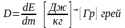 D – поглощенная доза. DE – энергия, сообщенная ионизирующим излучением веществу массой dm.