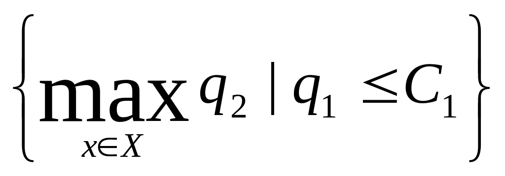 Удеяких задачах виявляється можливим або навіть необхідним задавати обмеження на супутні критерії не так жорстко, як узадачі (7). Наприклад, якщо супутній критерій характеризує вартість витрат, то замість фіксації витрат розумніше задавати їх верхній рівень, тобто формулювати задачу із обмеженнями типу нерівностей:
