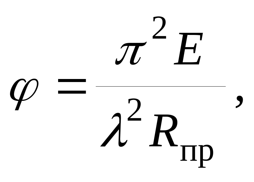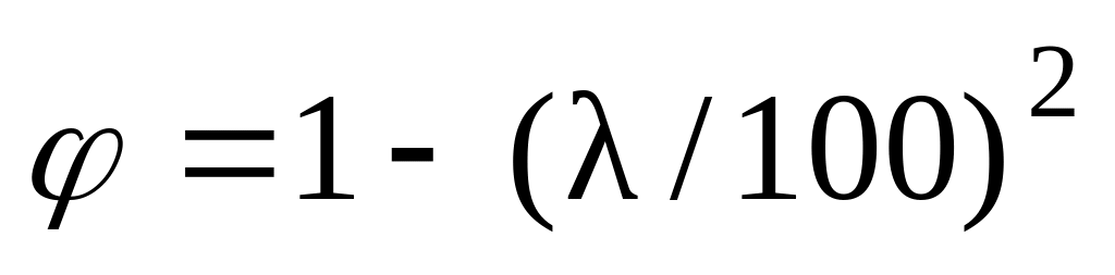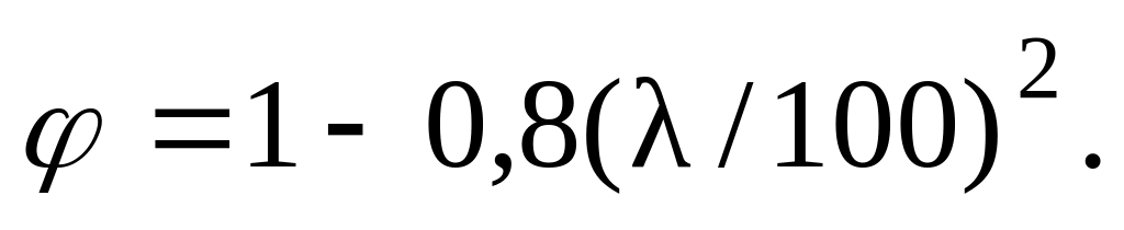 – для фанерных труб при λ>69 φ=2390/λ2, при λ≤69 φ=1-1,046(λ/100)2;