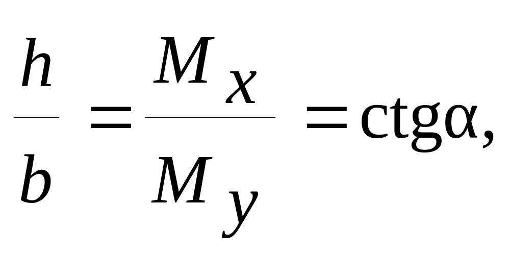 Наименьшая площадь поперечного сечения прямоугольного прогона при косом изгибе из условия прочности получается при соблюдении отношения
