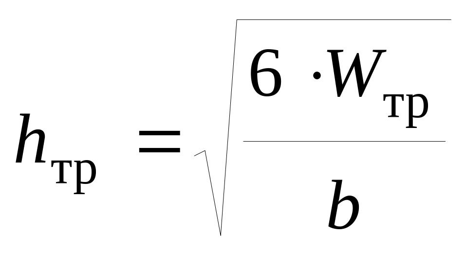 По найденному моменту сопротивления находят размеры поперечного сечения и подбирают пиломатериал по сортаменту, например для прямоугольного сечения,