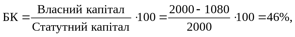 1. Статутний фонд 2000 2. Непокриті збитки –1080 3. Довгострокові пасиви 1200 4. Короткострокові пасиви 800 |