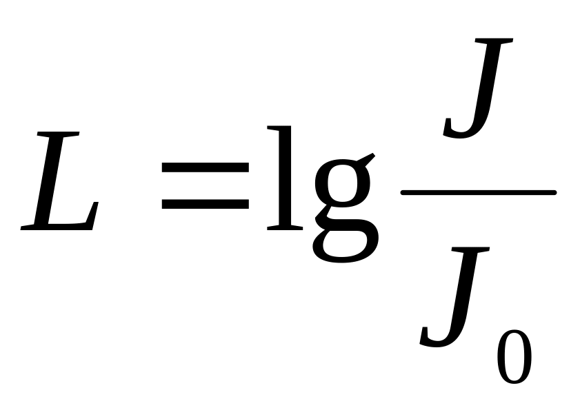 Если интенсивность звука J больше исходной в 10 раз, т. е. J/J0 =10, то принято считать, что интенсивность звука J превышает исходную на 1Б (бел); при J/J0 = 100 превышает на 2 Б и т. д., т. е. уровень интенсивности звука можно определять по формуле: