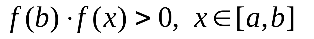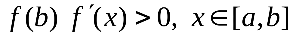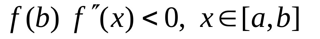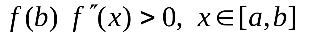 Жанама әдісінің геометриялық интерпретациясы жанамалар жүргізуге негізделген. Қай шарт орындалғанда 1-ші жанама [a,b] аралығының оң жақ шетіне сәйкес келетін доғаның оң жақ шеткі нүктесіне жүргізіледі? |