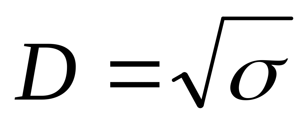 Для вычисления выборочной дисперсии Dв и выборочного стандартного отклонения в имеются функции ДИСП (или VAR) и СТАНДОТКЛОН (или STDEV). Аргументом этих функций является набор чисел, как правило, заданный диапазоном ячеек, например, =ДИСП (В1:В48).