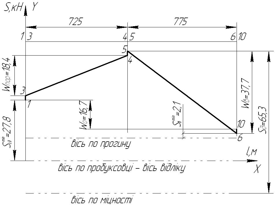 Діаграма натягу стрічки 2ШТК-150 з 5-ма тканинними прокладками ТК-150 конвеєра 2ЛТ80У працюючого під навантаженням наведена на рис.2.7.