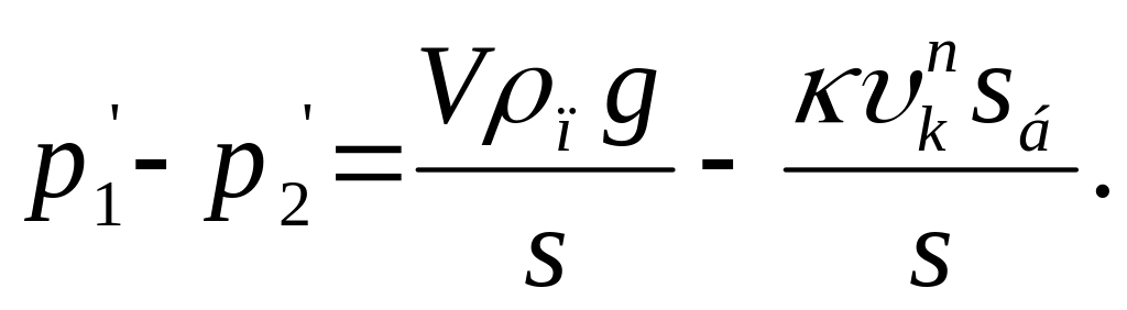 Сила от давления потока на верхнюю плоскость поплавка: p'2s, где p'2 – среднее давление потока на единицу верхней плоскости поплавка; s – площадь наибольшего поперечного сечения поплавка.