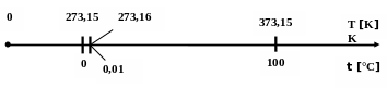 В термодинамической шкале Кельвина нижней точкой является точка абсолютного нуля (°К), а единственной экспериментальной основной точкой – тройная точка воды. Этой точке присвоено числовое значение 273,16° К. Тройная точка воды – это точка равновесия воды в твердой, жидкой и газообразной фазах. Термодинамическую температуру обозначают через Т, а числовые значения сопровождают знаком К. Решением XIΙΙ Генеральной конференции по мерам и весам принята Международная практическая температурная шкала (МТШ-90). В соответствии с МТШ-90 установлено равенство 10С = 1К, при этом имеет место равенство: