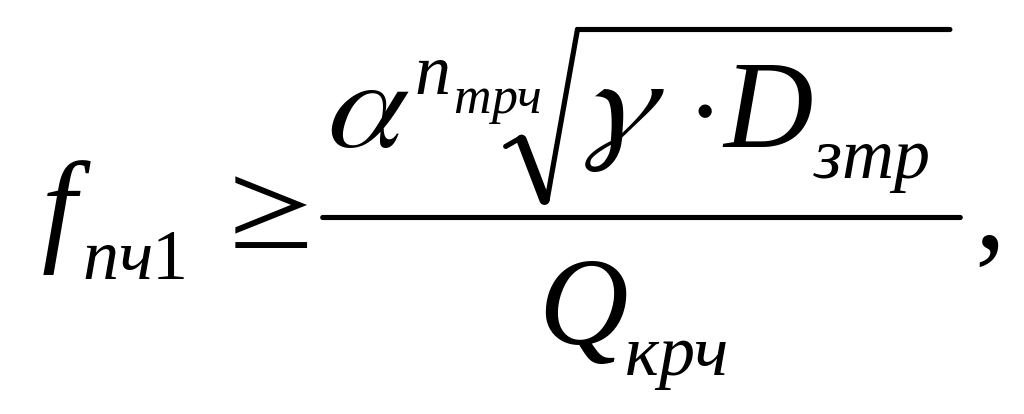 Для удовлетворения заданных требований по избирательности радиоприёмника по зеркальному каналу первого преобразования возможны вариации количеством контуров в ТРЧ и значением fпч1. Первоначально полагают, что в ТРЧ включены nтрч = 2; 3; 4 определяется нижняя граница fпч1 по формуле: