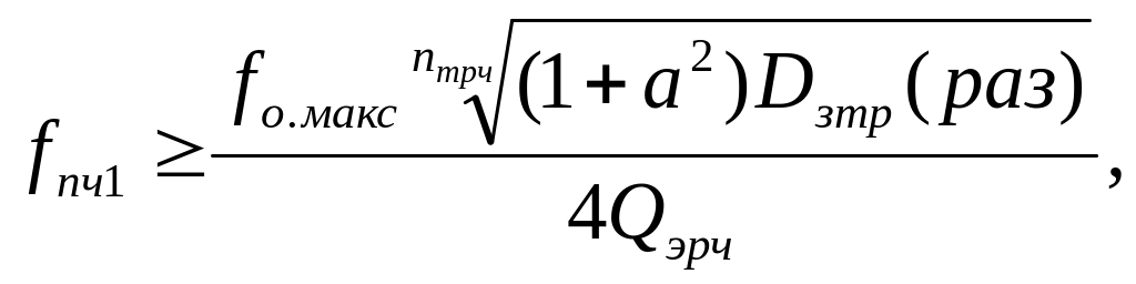 n = 4 → fпч1 ≥ 1,189 МГц;