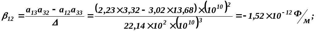Прирівнявши у перших рівняннях систем (8.69) і (8.69, а) коефіцієнти перед потенціалами , і , одержуємо вирази для визначення ємнісних коефіцієнтів :