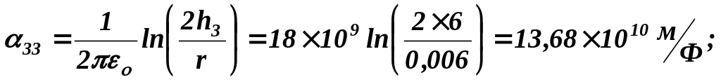 Потенціальні коефіцієнти проводів на одиницю довжини лінії визначаємо за формулами (8.63):