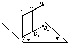 5. Если прямая параллельна плоскости проекций, то на эту плоскость эта прямая проецируется без искажений (рис.1.13).