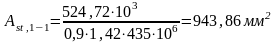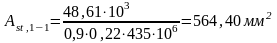 Требуемая площадь сечения арматуры в расчетных сечениях назначаем по максимальному значению: