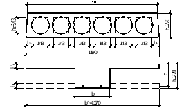 Поперечное сечение многопустотной плиты приводим к эквивалентному тавровому сечению. Заменяем круглые отверстия равновеликими по площади квадратами со стороной h1.