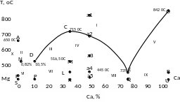 По диаграмме плавкости двухкомпонентной системы Mg-Ca определите:
