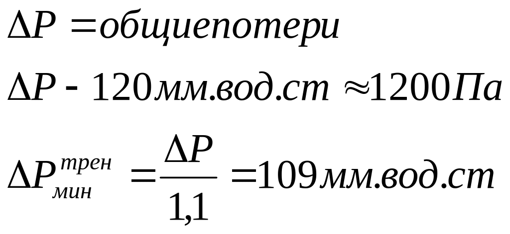 Принимаем потери на местное сопротивление равными 10% от линейных потерь, общие допустимые потери давления 120 па (мм.вод.ст.) тогда потери на трение составят: