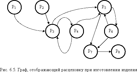 На рис.6.5 через P1, P2,…, P8 обозначены цеха: P1 – литейный; P2 – кузнечный; P3 – механический; P4 – термический; P5 – механосборочный; P6 - общей сборки; P7 – испытательный; P8 – упаковочный.