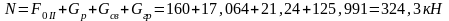 Вертикальная составляющая нормальных сил в уровне нижних концов свай: