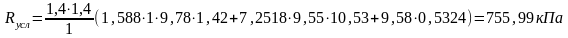 Rусл - расчётное сопротивление грунта в плоскости подошвы условного фундамента, кПа.